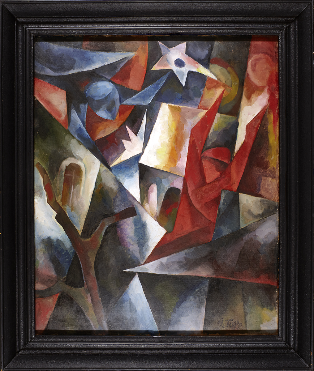 In einem Auktionshaus in München wurde kürzlich das Gemälde „O. T. ROT UND BLAU” (Öl auf Malkarton, 82 × 67,5 cm, 1918) von Arnold Topp angeboten. Arnold Topp wurde 1887 in Soest geboren und studierte ab 1909 in Düsseldorf an der Kunstschule in Düsseldorf, um Zeichenlehrer zu werden. Er war mit Wilhelm Morgner, Eberhard Viegener und Wilhelm Wulff bekannt. Nach dem 1. Weltkrieg gehörte er zu den wichtigsten Künstlern der Galerie „Der Sturm“ von Herwarth Walden. Arnold Topp lebte und arbeitete zunächst in Brandenburg und später in Westpreußen. Im Januar 1945 wurde er zum „Volkssturm“ einberufen und galt ab März 1945 als verschollen. 1961 wurde er vom Amtsgericht Soest für tot erklärt. Ein Großteil seines Werkes gilt als verschollen, da seine Frau die Werke Arnold Topps bei ihrer Flucht im Frühjahr 1945 in Westpreußen zurücklassen musste. In der Kunstsammlung des Museums Wilhelm Morgner befinden sich zwar zwei Zeichnungen und zwei Druckgrafiken dieses bedeutenden expressionistischen/kubistischen Künstlers, aber kein Gemälde. Für das Museum Wilhelm Morgner wäre das Bild „O. T. ROT UND BLAU“ von Arnold Topp eine echte Bereicherung.