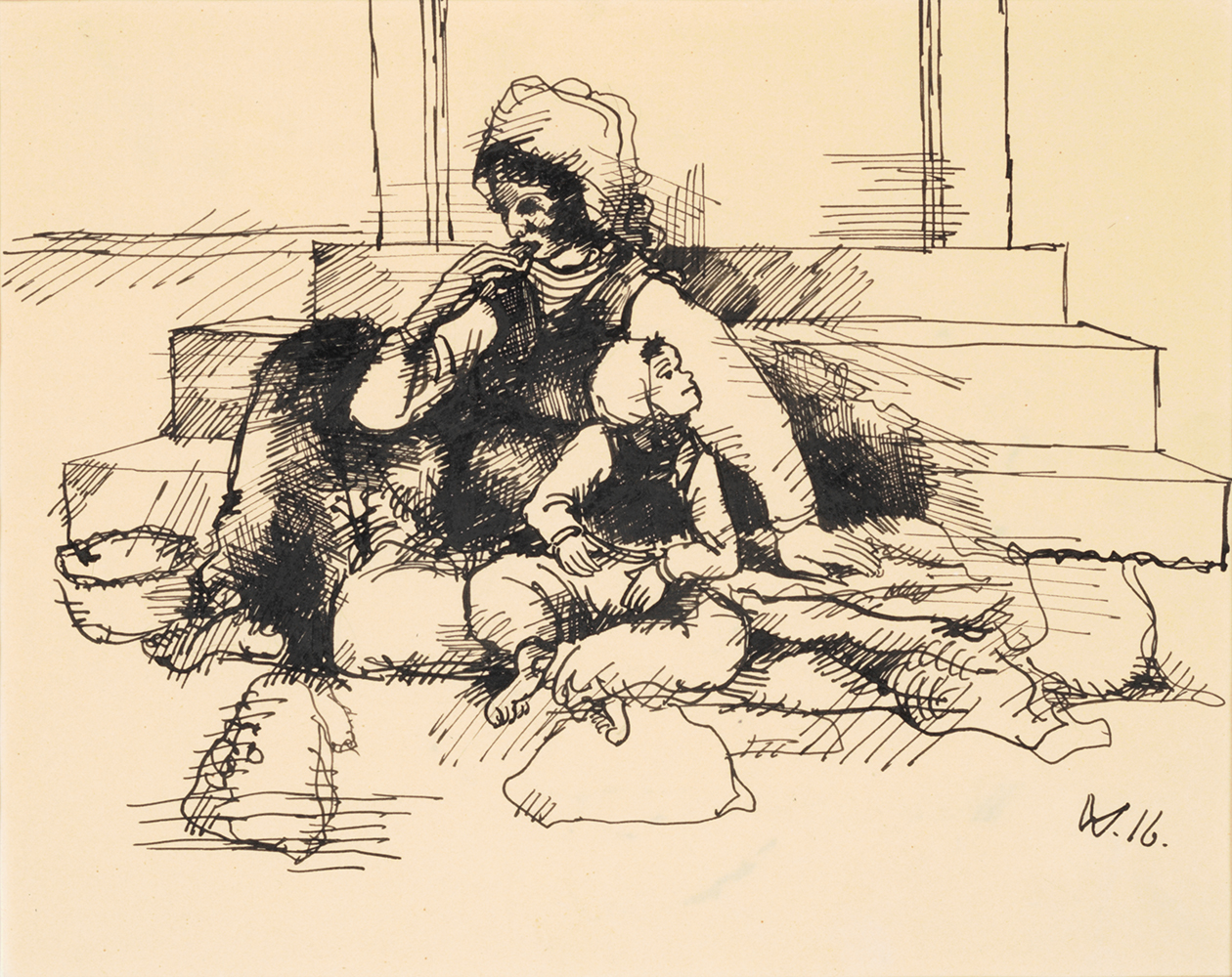 Wilhelm Morgner | Frau sitzt mit Kind vor 3 Stufen | 1916 | erworben 2021