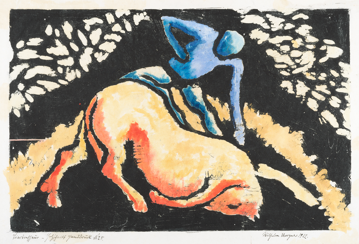Wilhelm Morgner | Tierdresseur | kolorierter Holzschnitt | 1912 | Foto: Thomas Drebusch